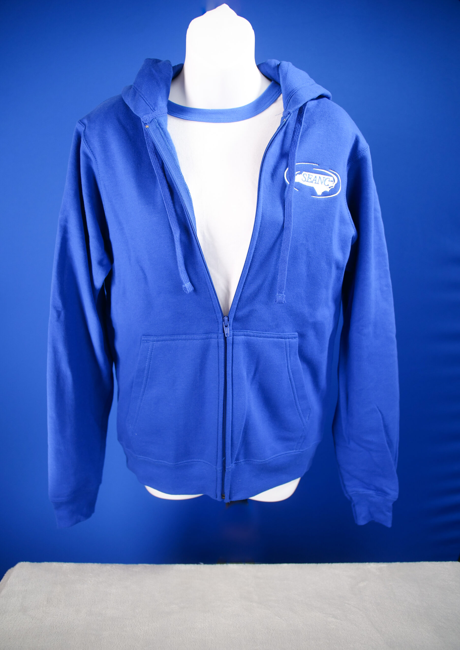 Unisex full zip hoodie with SEANC embroidered logo on left side.